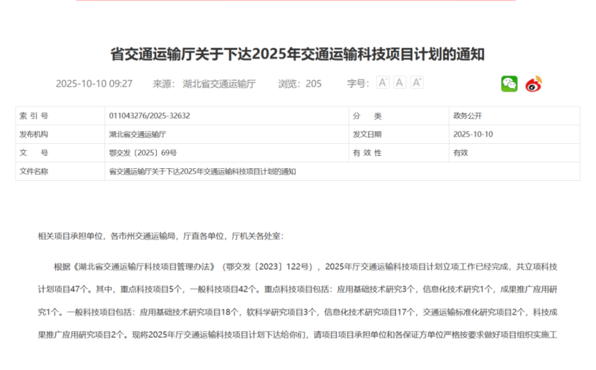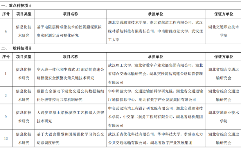 湖北聯(lián)投集團(tuán)五項(xiàng)課題入選湖北省交通廳2025年科技項(xiàng)目立項(xiàng)計(jì)劃
