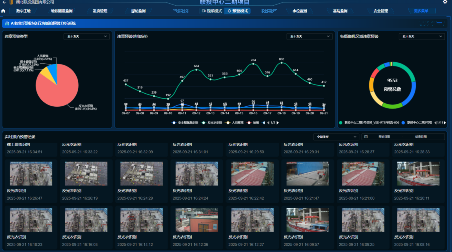 智能視頻監(jiān)控與AI預警場景:高清攝像頭與智能分析算法緊密結合,對施工現(xiàn)場進行全方位、無死角的監(jiān)控,一旦發(fā)現(xiàn)安全隱患或違規(guī)行為,立即觸發(fā)預警機制,有效預防事故發(fā)生。