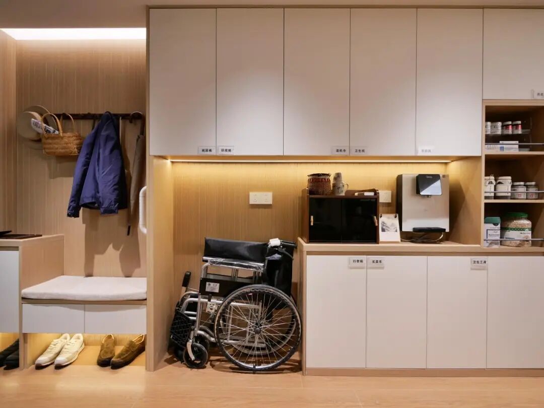 玄關(guān):帶扶手換鞋凳與中部鏤空柜體,讓彎腰風(fēng)險(xiǎn)歸零。